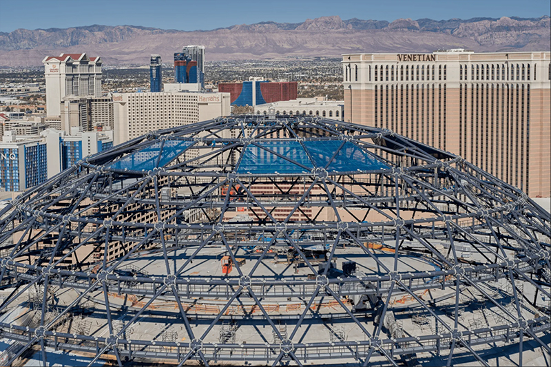 The Sphere, an arena for music and entertainment, stands in Paradise, Nevada, USA, to the east of the renowned Las Vegas Strip.The project was announced by Madison Square Garden Company (MSG) in 2018 as MSG Sphere. The spherical theater inside is known for its immersive audio and video capabilities.