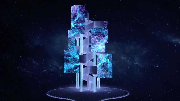 a huge Mobius ring, representing infinite possibilities and cyclical vitality.