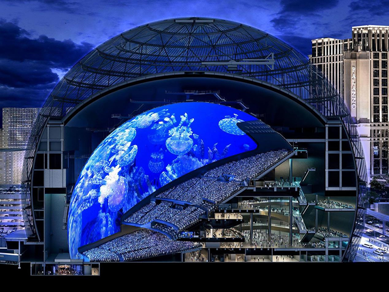 The Sphere, an arena for music and entertainment, stands in Paradise, Nevada, USA, to the east of the renowned Las Vegas Strip.The project was announced by Madison Square Garden Company (MSG) in 2018 as MSG Sphere. The spherical theater inside is known for its immersive audio and video capabilities.